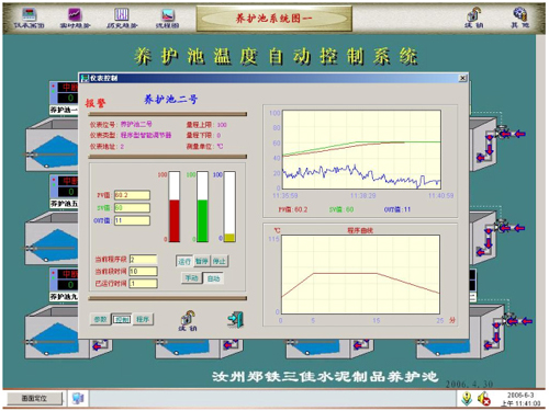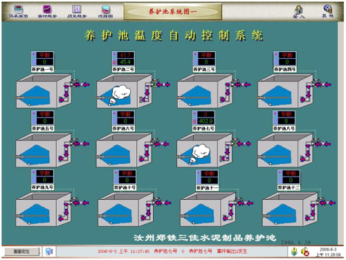 【水泥養(yǎng)護(hù)池1-12】的所有控制信息與數(shù)據(jù)信息都在控制室計(jì)算機(jī)上統(tǒng)一管理、分配。在計(jì)算機(jī)上對(duì)車間溫度進(jìn)行全方位的監(jiān)控,數(shù)據(jù)采集和各項(xiàng)事務(wù)的處理。