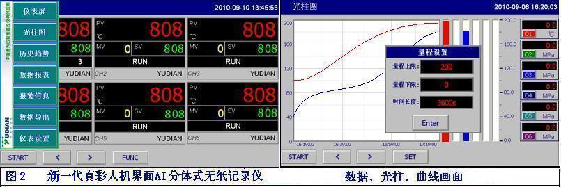 在顯示屏上模擬開(kāi)關(guān)、按鈕、指示燈動(dòng)畫(huà)、趨勢(shì)曲線、調(diào)節(jié)棒圖等。具有操作控制、狀態(tài)監(jiān)控、數(shù)據(jù)存儲(chǔ)、報(bào)表打印、無(wú)紙記錄儀通過(guò)網(wǎng)絡(luò)RS485通訊與計(jì)算機(jī)組建監(jiān)控系統(tǒng),每通道數(shù)據(jù)刷新時(shí)間50毫秒;